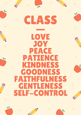 Love, Joy, Peace, Patience, Kindness, Goodness, Faithfulness, Gentleness, Self-Control.